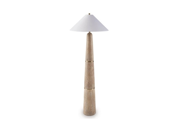 Dome sweet dome. Shine a light on your love of all things contemporary with this striking floor lamp. Its sleek antiqued copper-tone finish and bold, columnar design add a brilliantly modern touch to any room. A dome-shaped shade provides a warm and focused light, perfect for reading or creating a cozy ambiance. The matching table lamp (sold separately) is also a bright idea.
